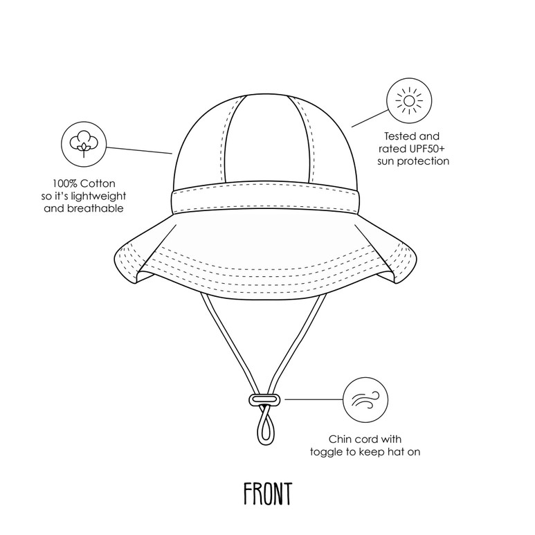 Made from soft, lightweight 100% cotton, this breathable hat keeps little ones cool and comfortable while offering maximum UPF50+ sun protection.