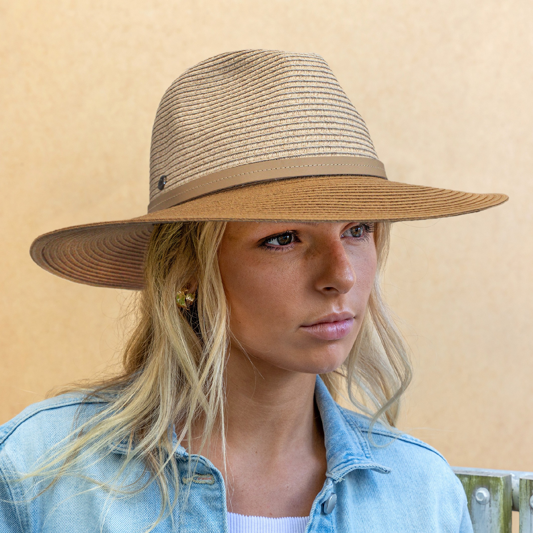 The EV470 Lexi Fedora from Rigon Headwear offers a timeless design with modern versatility. Crafted in a chic mix camel/camel colorway, this fedora combines style and practicality for everyday wear.