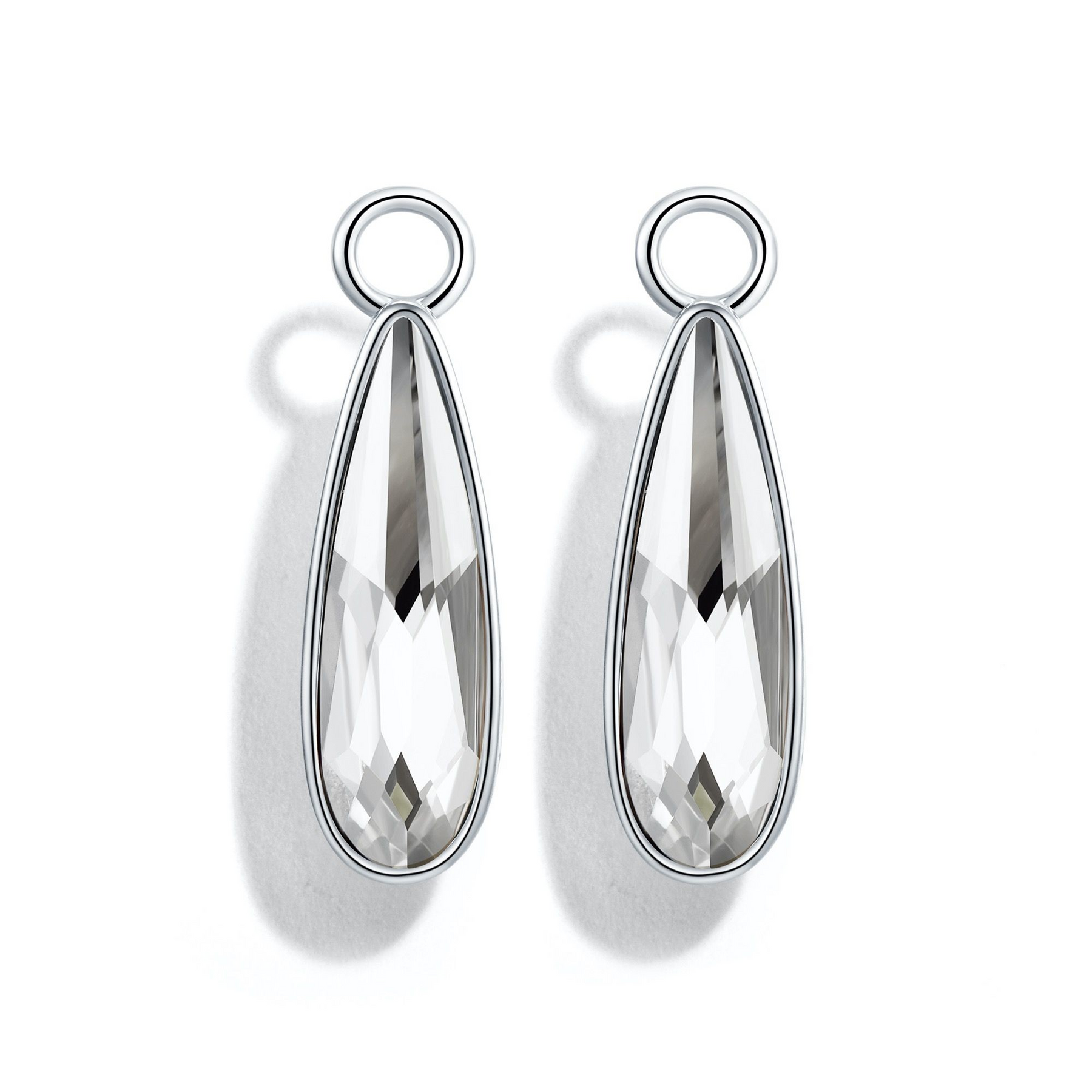 Designed to pair perfectly with any MYJS Mix carrier earrings (sold separately), this stunning pair of statement charms features brilliant Swarovski Crystals in Silver Shade, cut to catch and reflect light with breathtaking sparkle. The elongated raindrop silhouette, measuring 25mm in height, creates a graceful, eye-catching effect that moves with you.