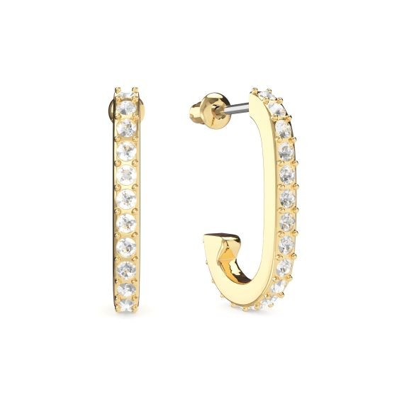 Crafted with a sleek profile and accented with a line of pave-set crystals, these hoops bring subtle shimmer and elevated style to any outfit — from casual daywear to evening glam. Lightweight and easy to wear, they’re the ideal accessory for any occasion.