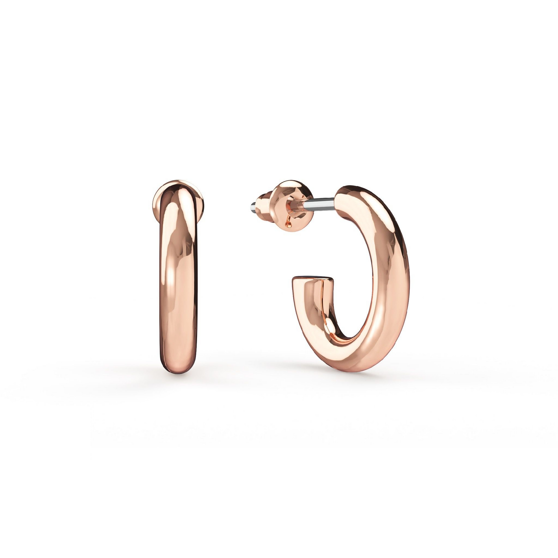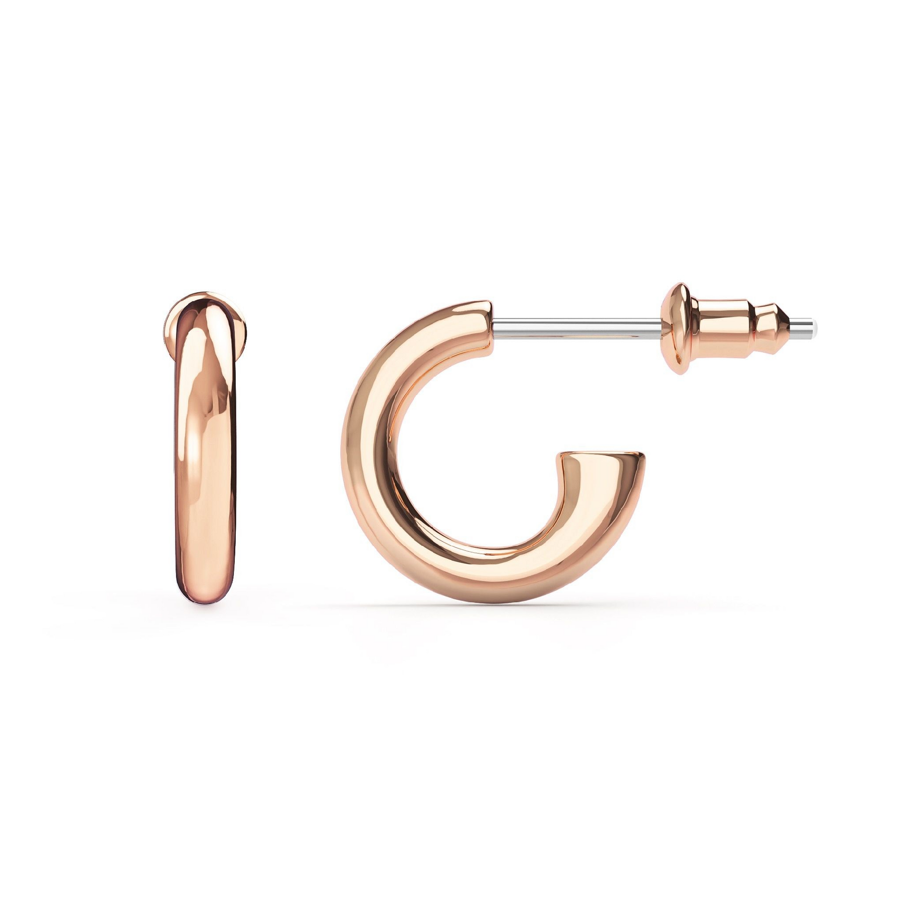 Expertly crafted and finished in rose gold plating, these mini hoops measure 11.5mm in height, making them the perfect everyday essential. Free from stones, their smooth, polished finish offers a clean and elegant silhouette.