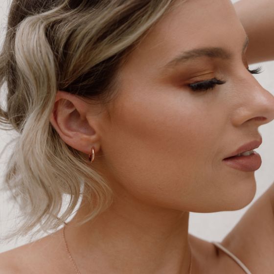 Regular price $34.95Handcrafted from sterling silver and finished with a warm rose gold plating, these 12mm circle hoop earrings are the perfect blend of minimalism and versatility. Their timeless silhouette makes them ideal for everyday wear — sleek enough to wear solo, and designed to transform into a custom drop earring with any MYJS Mix charm.